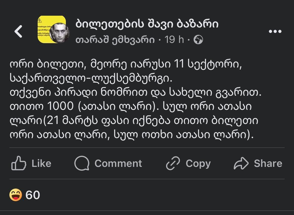ერთ-ერთი ადამიანი ბილეთებს 1000 ლარად ყიდის.