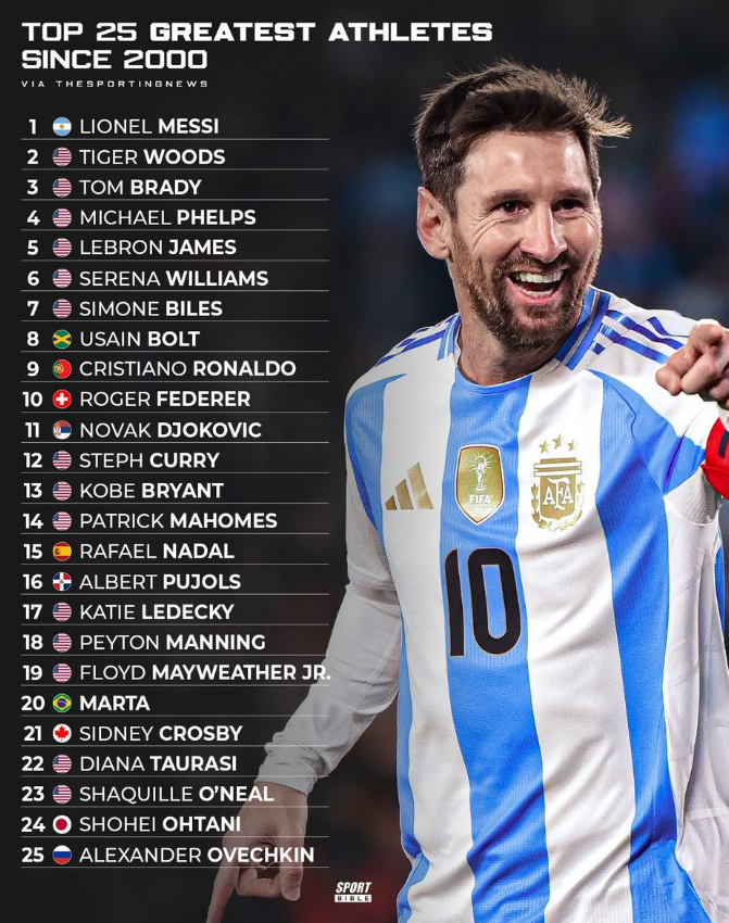 გამოცემა TheSportingNews-მა 21-ე საუკუნის 25 საუკეთესო სპორტსმენი დაასახელა.
