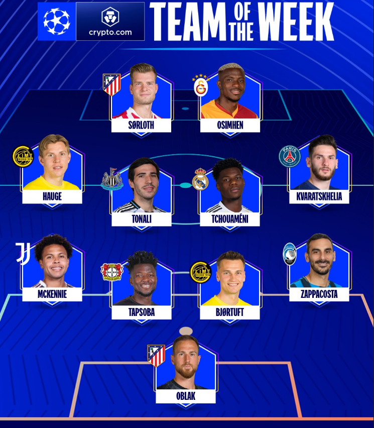 უეფამ ჩემპიონთა ლიგის 1/16-ფინალური ეტაპის განმეორებითი თამაშების სიმბოლური გუნდი დაასახელა.