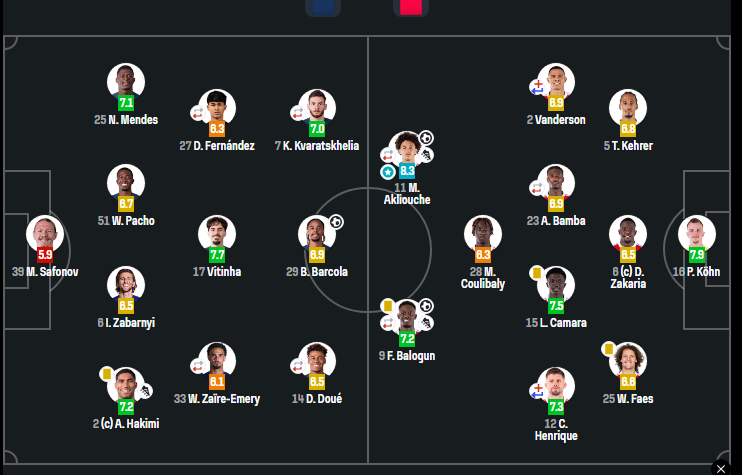 აღსანიშნავია, რომ ამ მატჩში ხვიჩა კვარაცხელიამ მოედანზე 60 წუთი გაატარა და 7.0 შეფასება მიიღო.