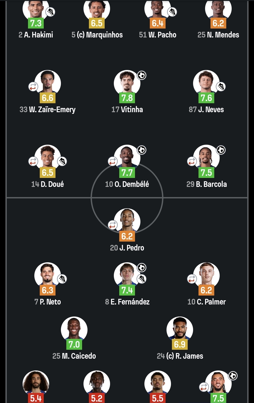 ხვიჩა კვარაცხელია ლონდონის "ჩელსის" წინააღმდეგ საუკეთესო იყო და 9.3 შეფასება მიიღო.