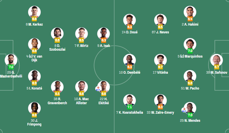 პირველი ტაიმის შემდეგ ანგარიში 0:0-ია. საერთო ჯამში კი პარიზელები 2:0-ს იგებენ.
