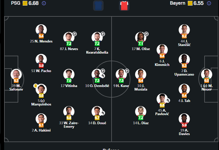 პსჟ-სა და ბაიერნის პირველი ტაიმი პარიზელთა გამარჯვებით 3:2 დასრულდა.