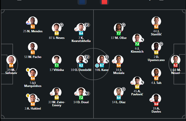 რა შეფასება მიიღო ხვიჩა კვარაცხელიამ "ბაიერნთან" მატჩში