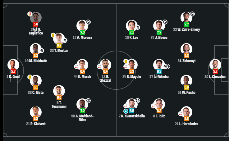 აღსანიშნავია, რომ ხვიჩა კვარაცხელიამ ამ თამაშში გოლი გაიტანა და SofaScore-სგან ყველაზე მაღალი შეფასებაც მიიღო.