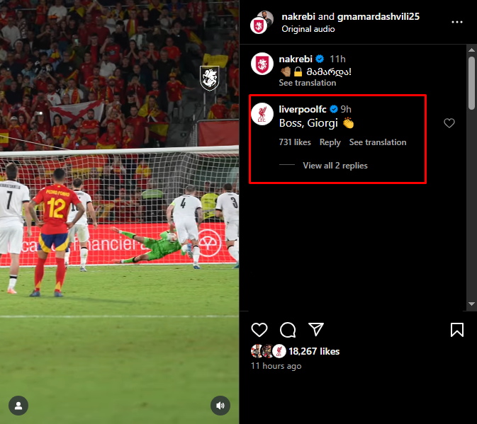 "ლივერპულის" ოფიციალური გვერდი მამარდაშვილის მოგერიებულ პენალტს სოციალურ ქსელში გამოეხმაურა.